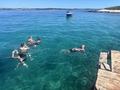 Der erste Tag stand ganz im Zeichen des Ankommens: Zimmer beziehen, die Umgebung erkunden und natürlich – ab ins Wasser! Das kristallklare Meer, die mediterrane Sonne und die entspannte Atmosphäre sorgten sofort für gute Laune und ein Gefühl von Freiheit.
