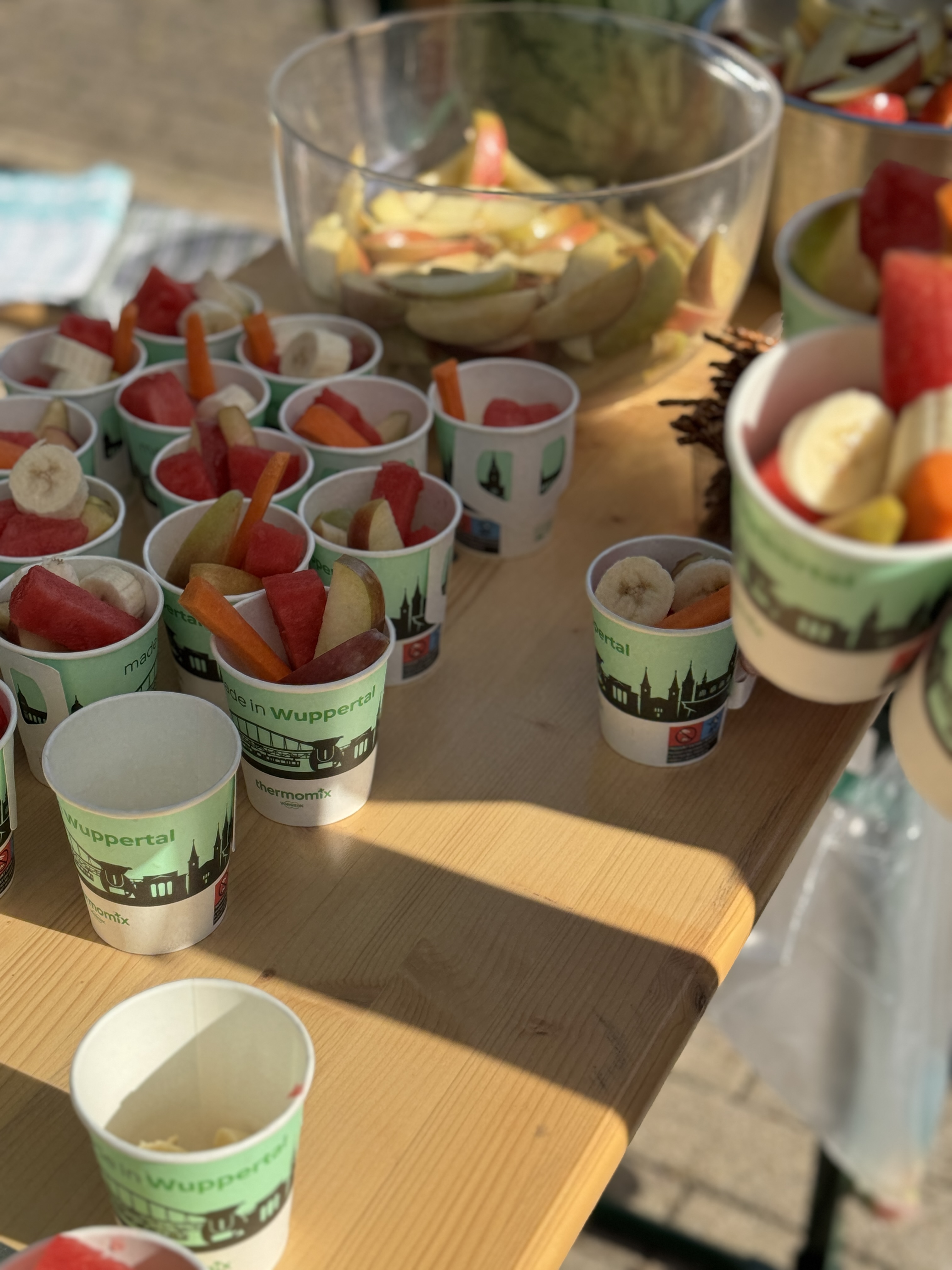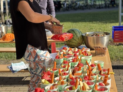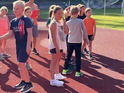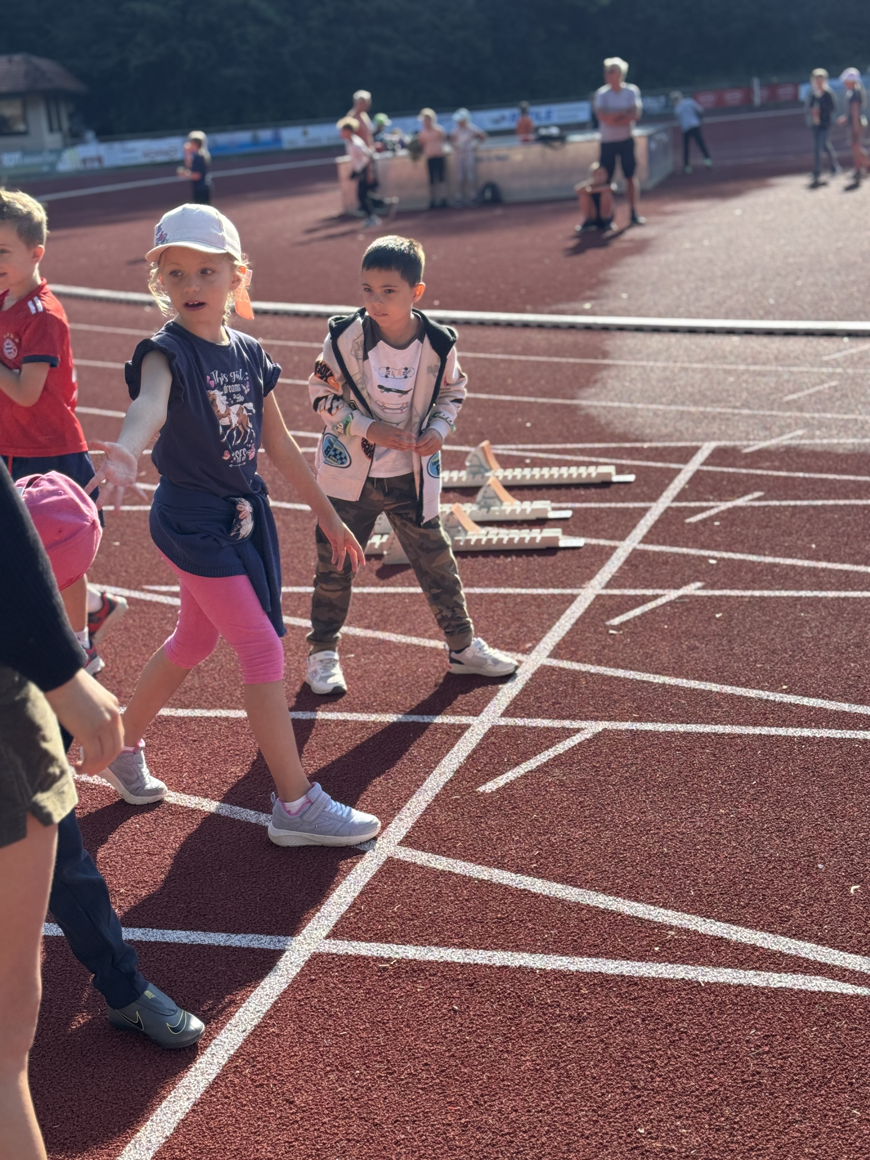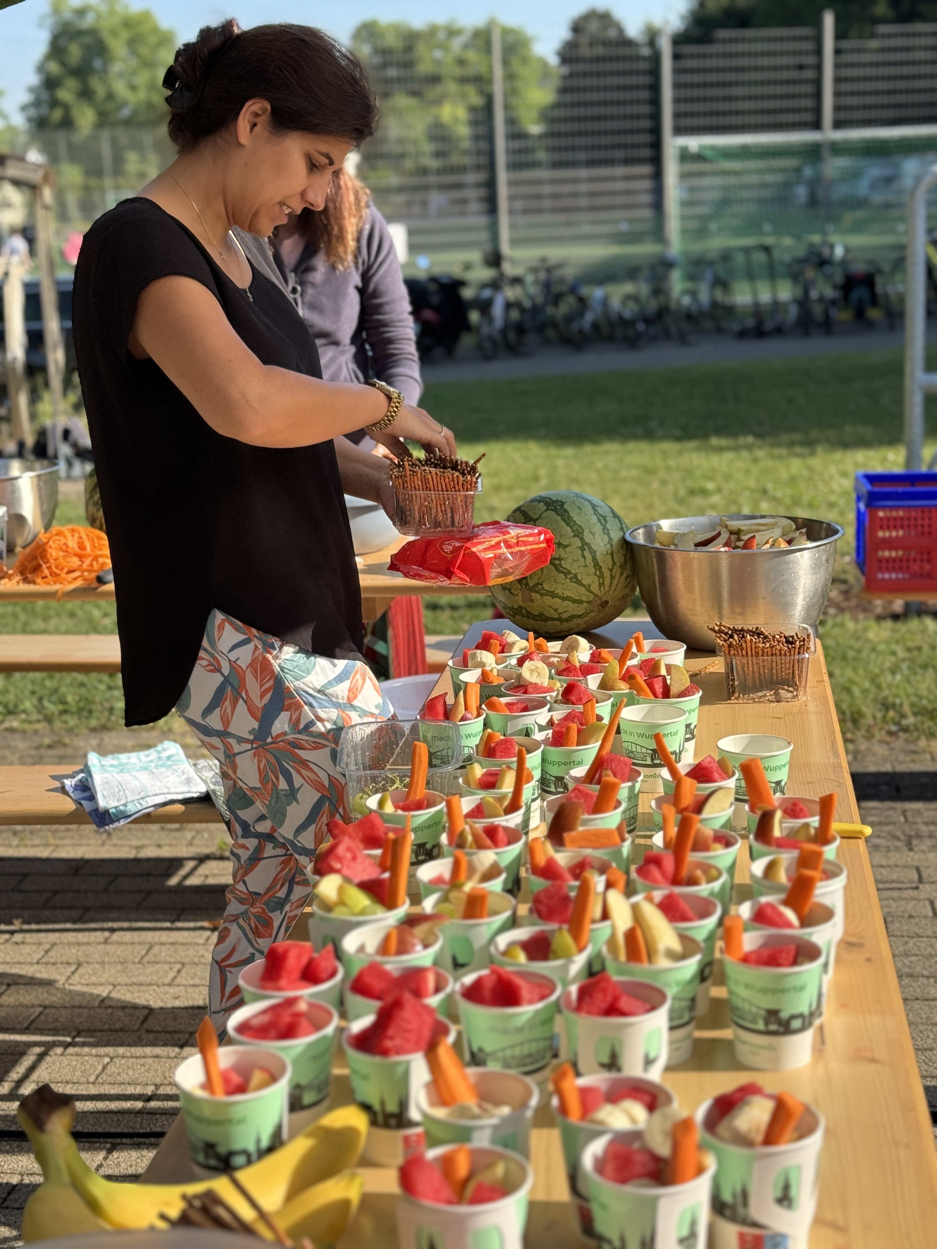 Danach wurde es sportlich: In den Disziplinen Werfen, Weitsprung und Sprint oder Ausdauerlauf gaben alle ihr Bestes. Unterstützt wurden die Klassen von engagierten Eltern, die sie zu den Stationen begleiteten. Andere Eltern sorgten für die nötige Stärkung zwischendurch – mit leckeren Obst- und Gemüsebechern. Danke dafür!