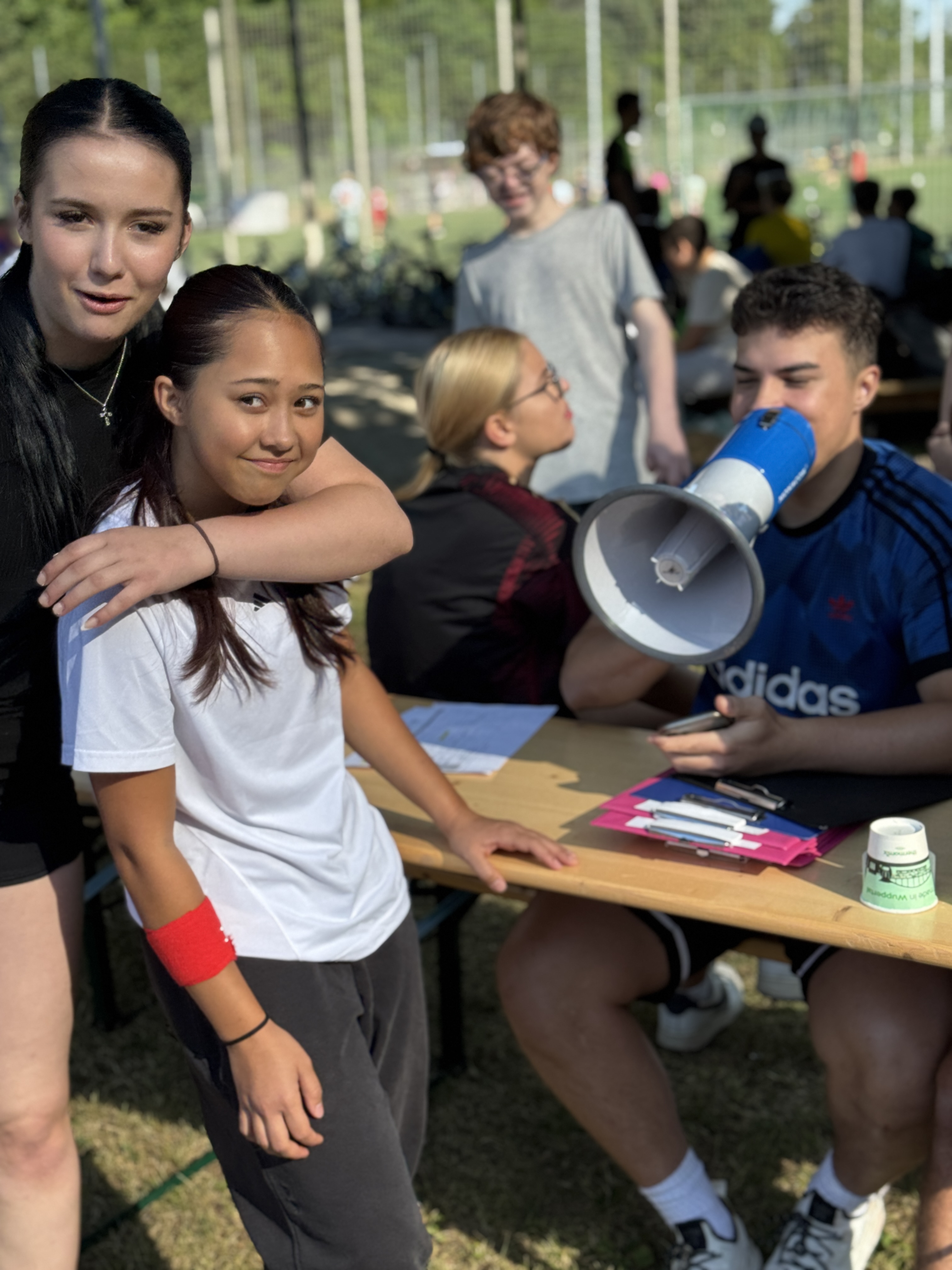 Die Stimmung war einfach großartig: Anfeuern, Mitfiebern, Jubeln – überall war spürbar, wie sehr wir als Schulgemeinschaft zusammenhalten. Ein echtes Highlight war der Staffellauf aller Klassen. Besonders spannend: Die Klasse 8 holte sich den Sieg und trat dann sogar gegen die Lehrerstaffel an – und gewann auch dieses Rennen unter tosendem Applaus!