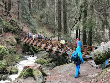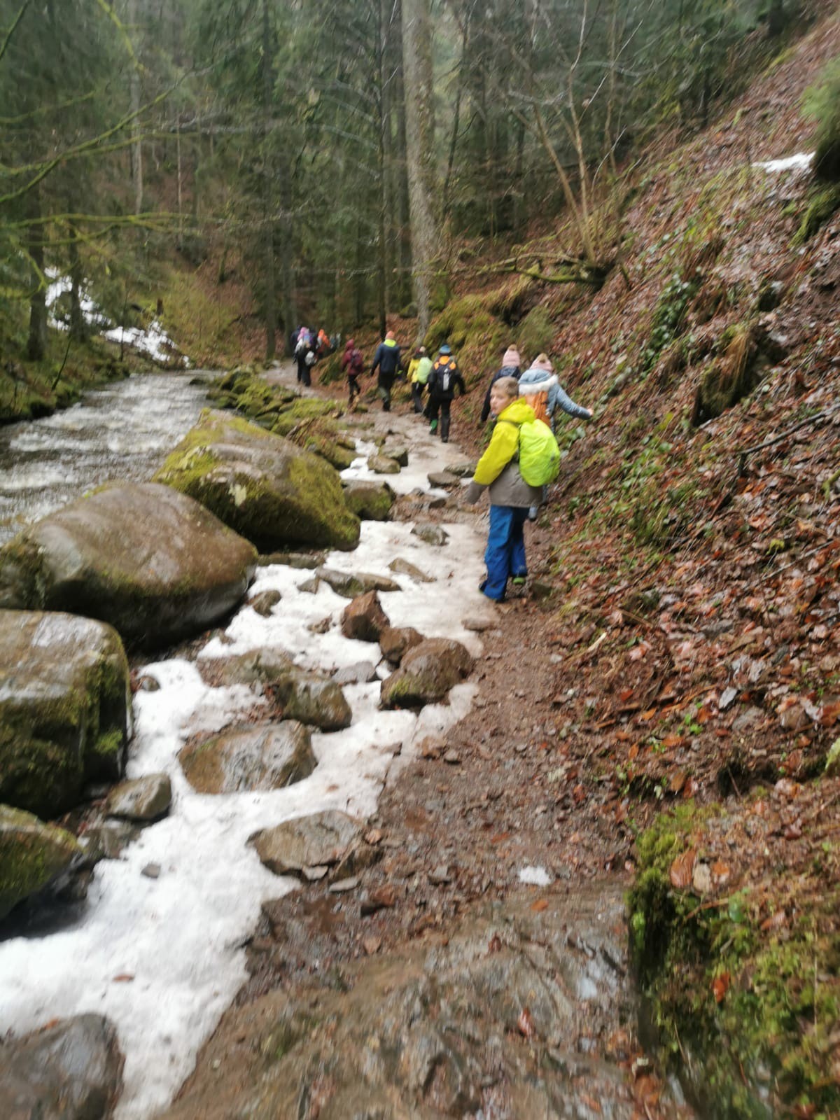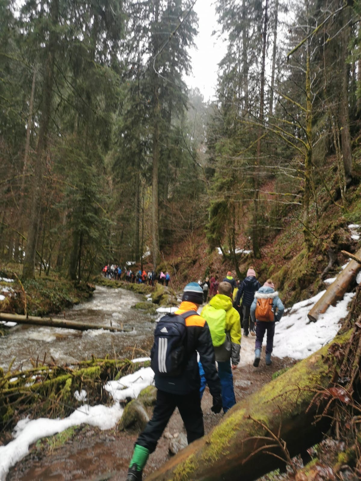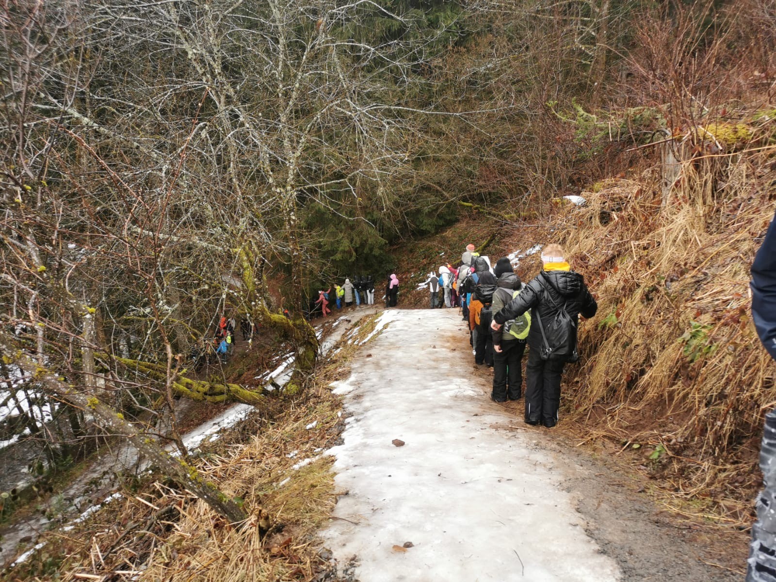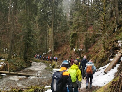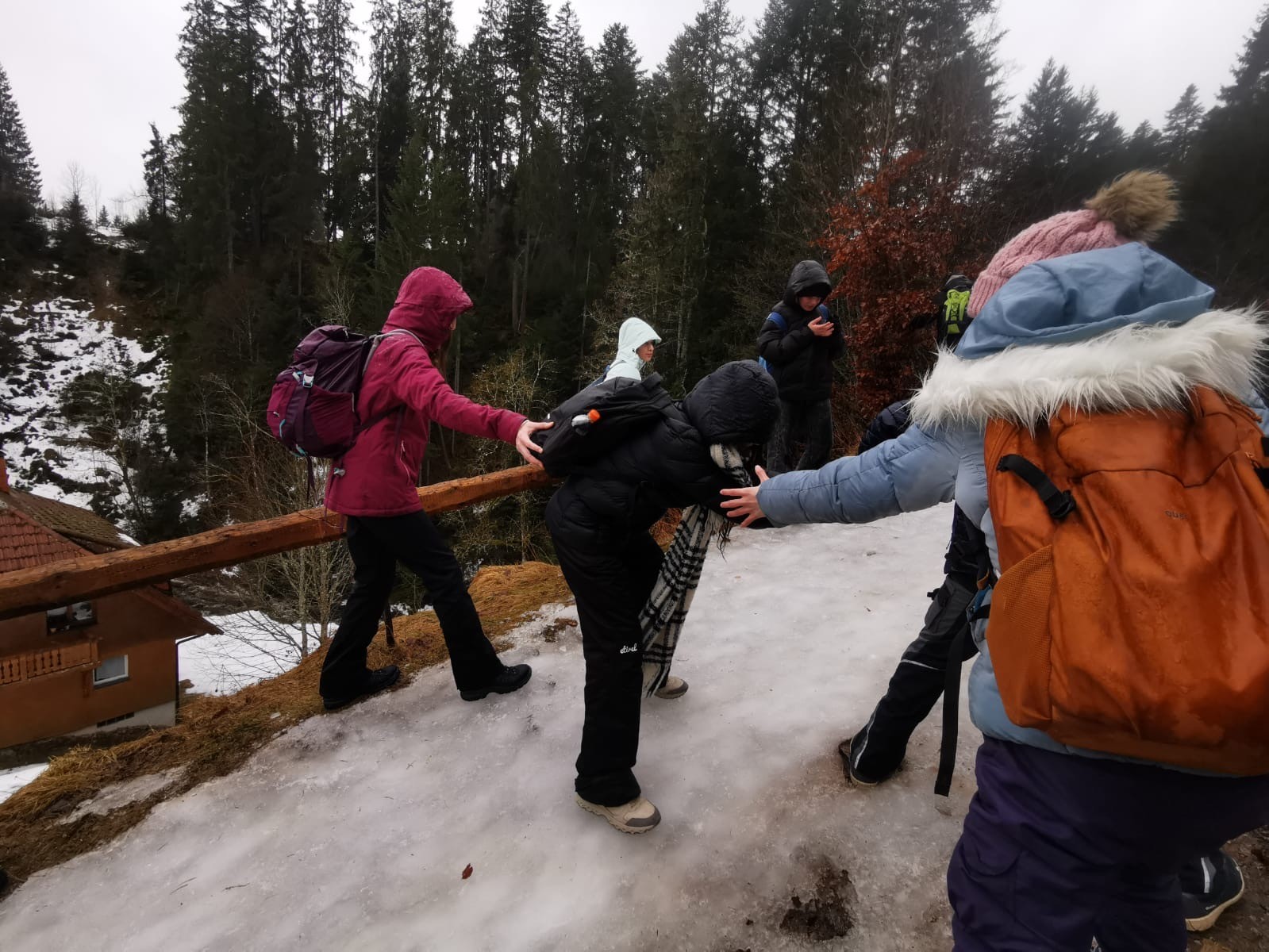 Kurzerhand entschieden unsere Lehrkräfte um. Statt Skipiste ging es gemeinsam auf eine Wanderung durch den regennassen Schwarzwald. Und ja, es war matschig. Sehr matschig. Schuhe versanken im Boden, Jacken wurden nass, Haare zerzaust. Aber es wurde gelacht, gerutscht und gegenseitig geholfen.