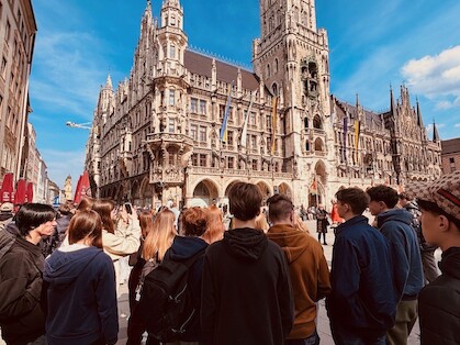 Schon früh am Montagmorgen um 6:00 Uhr startete die Reise an der FESM. Noch etwas müde, aber voller Vorfreude ging es mit dem Bus zunächst Richtung Breisach, wo eine weitere 9. Klasse dazustieß. Schnell wurde aus einer Fahrt ein gemeinsames Erlebnis unterwegs in Richtung der bayerischen Landeshauptstadt München.