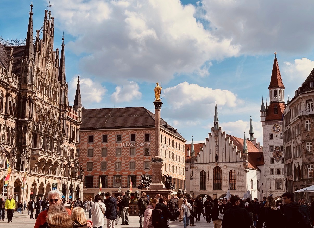 Im Rahmen der historischen Stadtführung wurden außerdem weitere bedeutende Orte wie die Feldherrnhalle sowie das Alte Rathaus besucht, die ebenfalls eng mit verschiedenen Epochen der Münchner Stadt- und Zeitgeschichte verbunden sind.